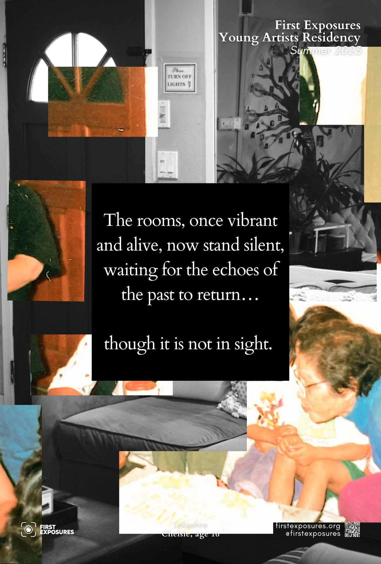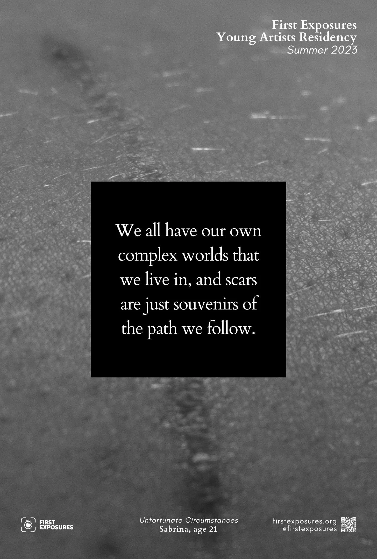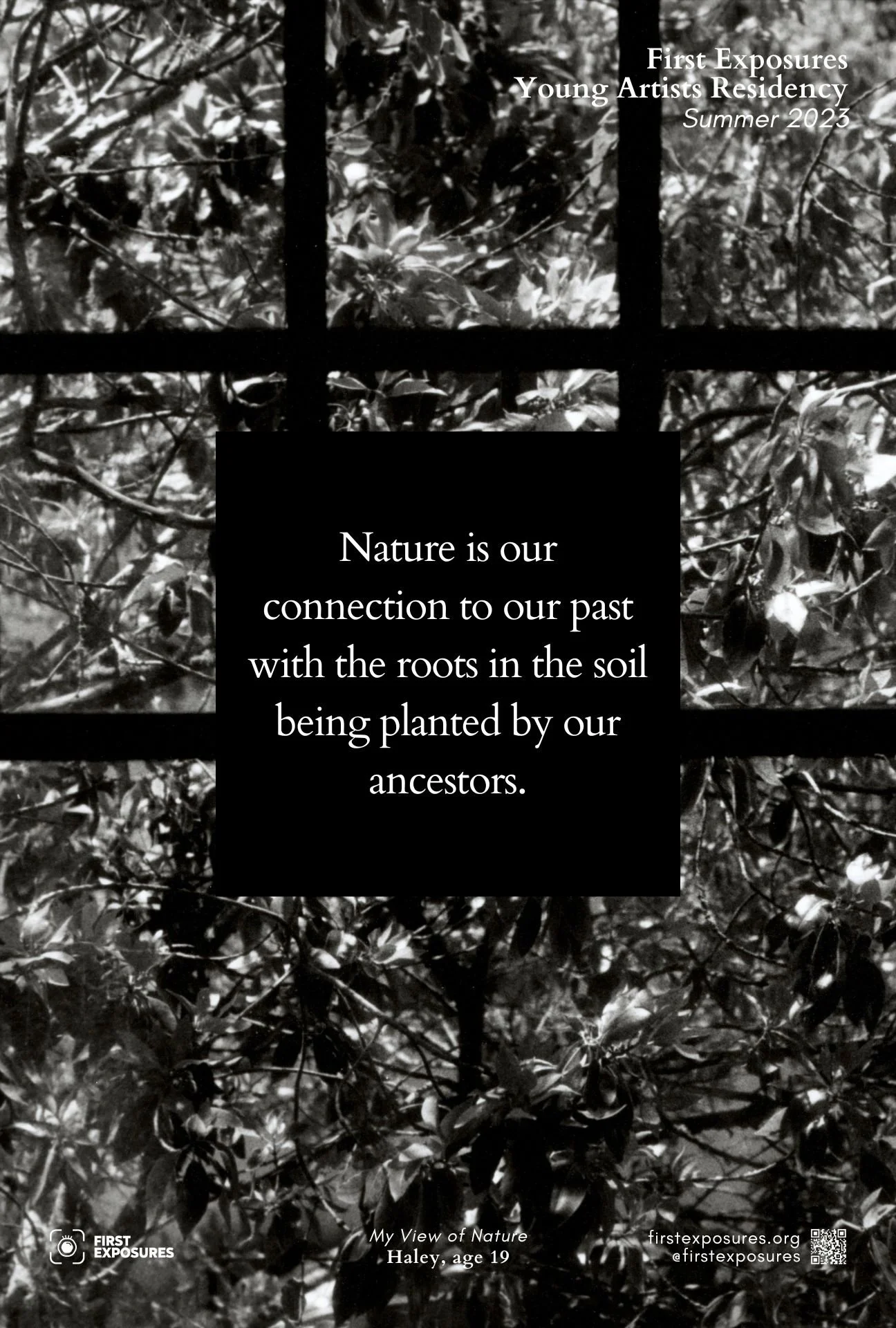 First Exposures Young Artist Residency cultivates the next generation of photographers and artists. Spanning over 7 weeks, this residency offers an invaluable opportunity for 6 - 8 experienced artists, ages 16 - 21 years old, to develop a personal photography-based project. This year, with the guidance of Teaching Artist Ashley A. Ross, the residents explore the (Un)Seen, examining the boundaries of visibility and invisibility in their social, political, and personal lives.